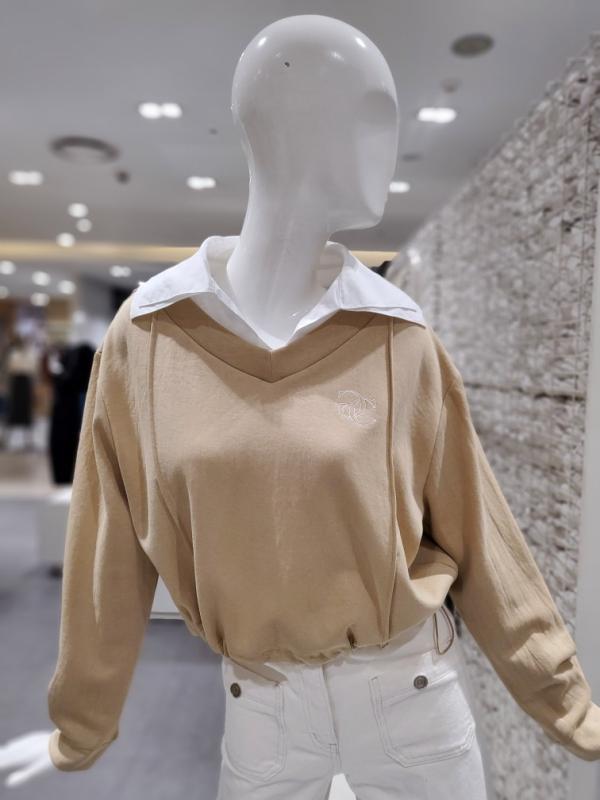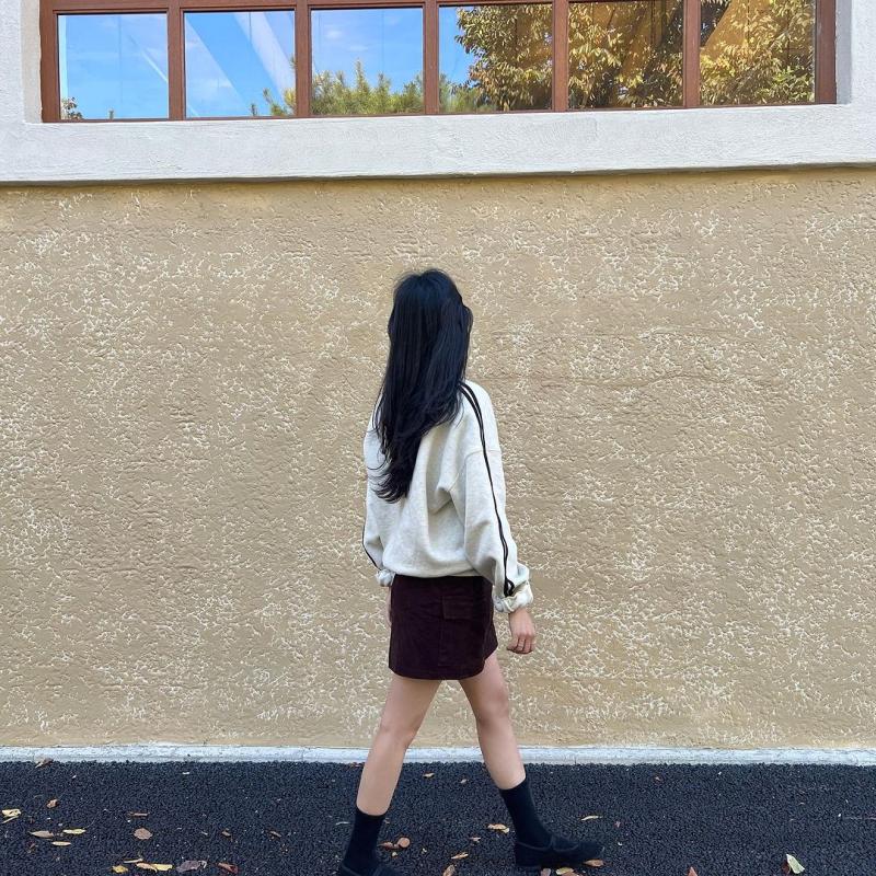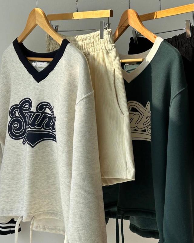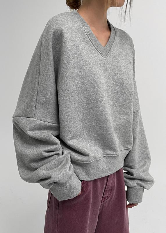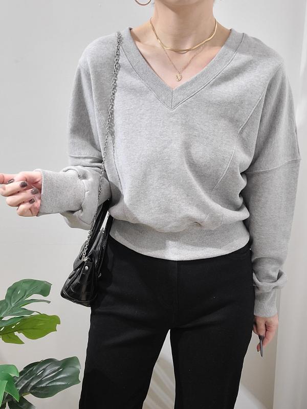가을 세미크롭 숏 쭈리 절개 브이넥 맨투맨