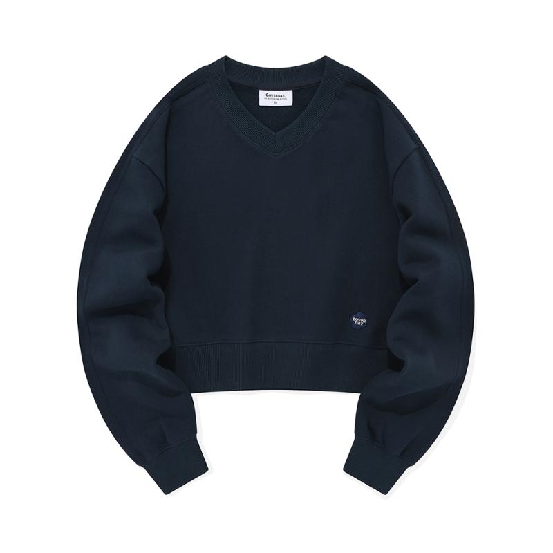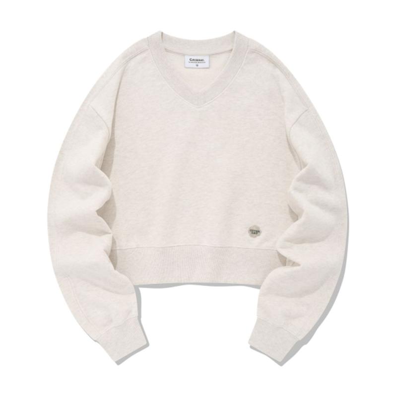 오트밀 베이직크롭맨투맨 브이넥맨투맨
