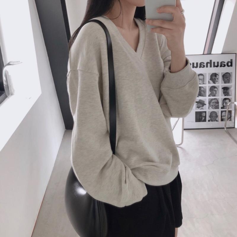 • 뉴욕 양기모 브이넥 맨투맨 ( 소라, 블랙, 백멜란지 )