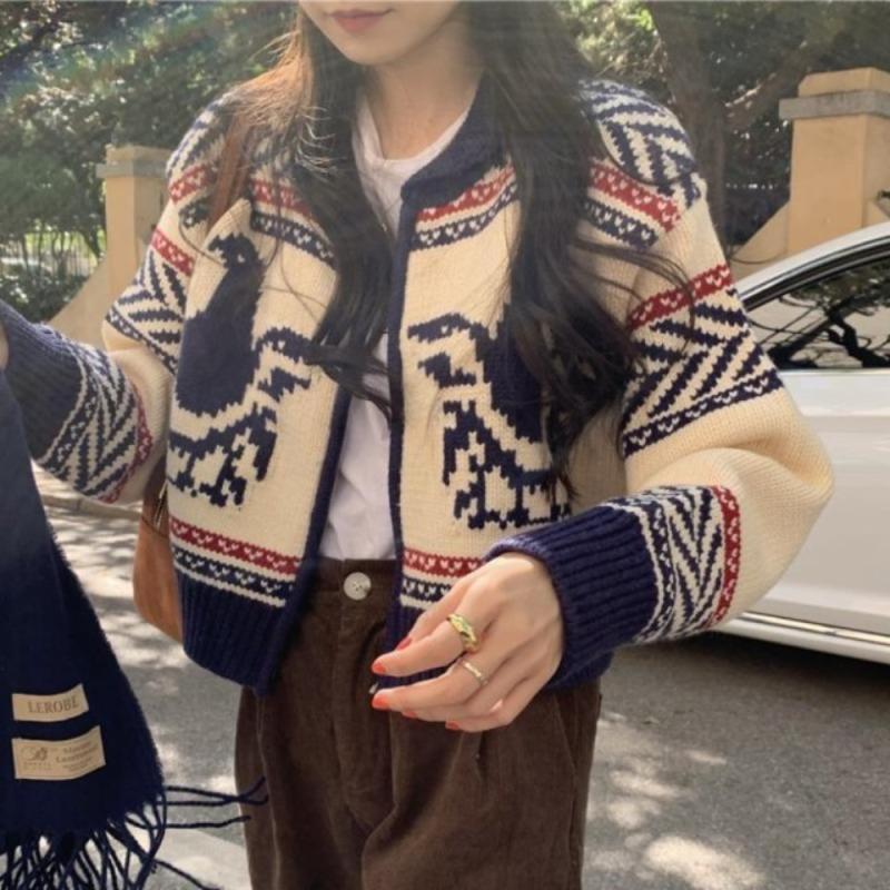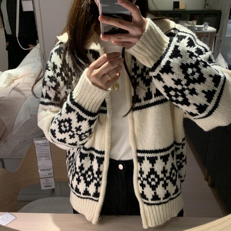 노르딕 자가드 니트 집업 가디건