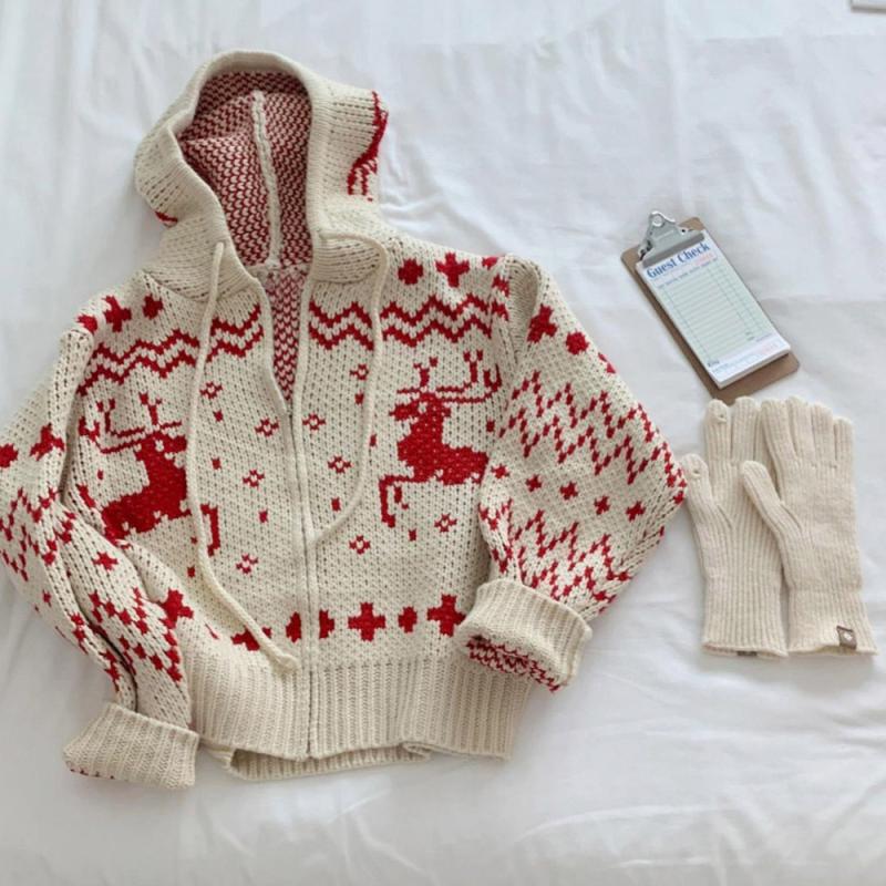 노르딕 사슴 루돌프 니트 후드 집업