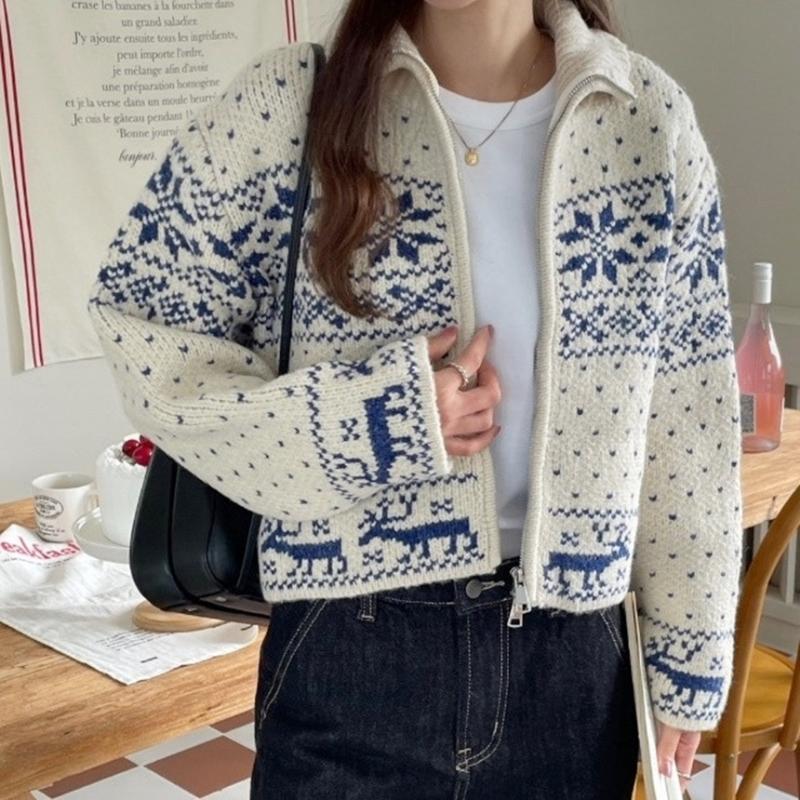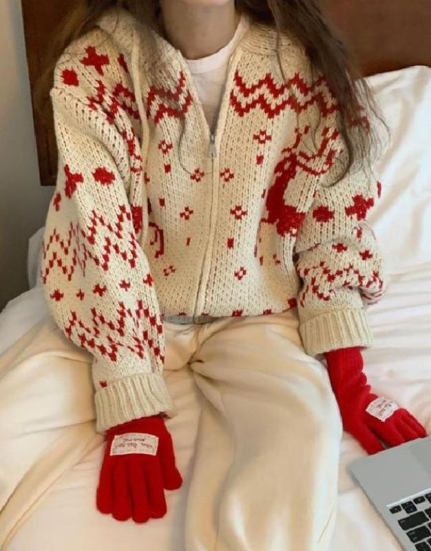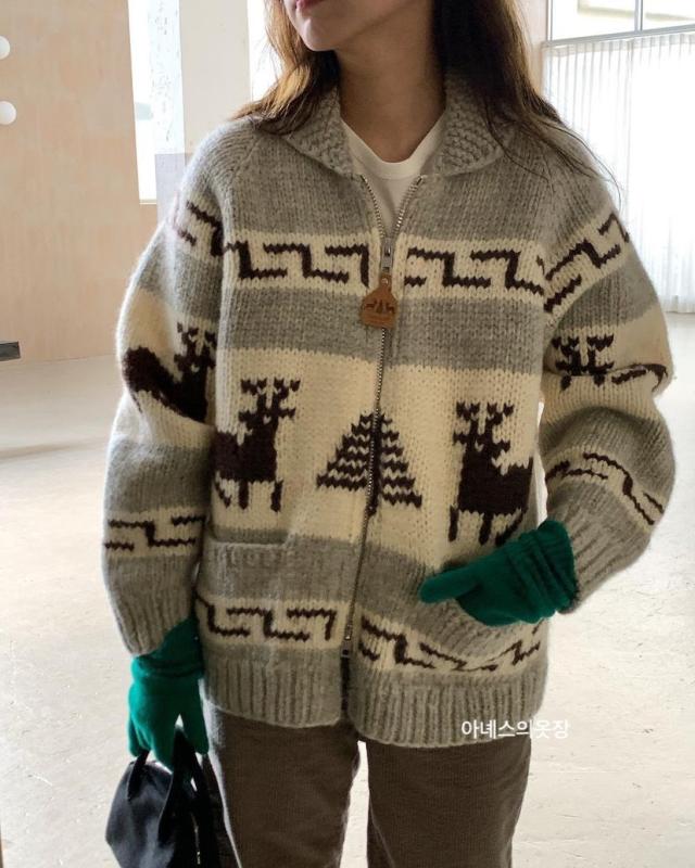 겨울 특유의 감성이 담긴 노르딕 디어 니트 집업🦌🎄