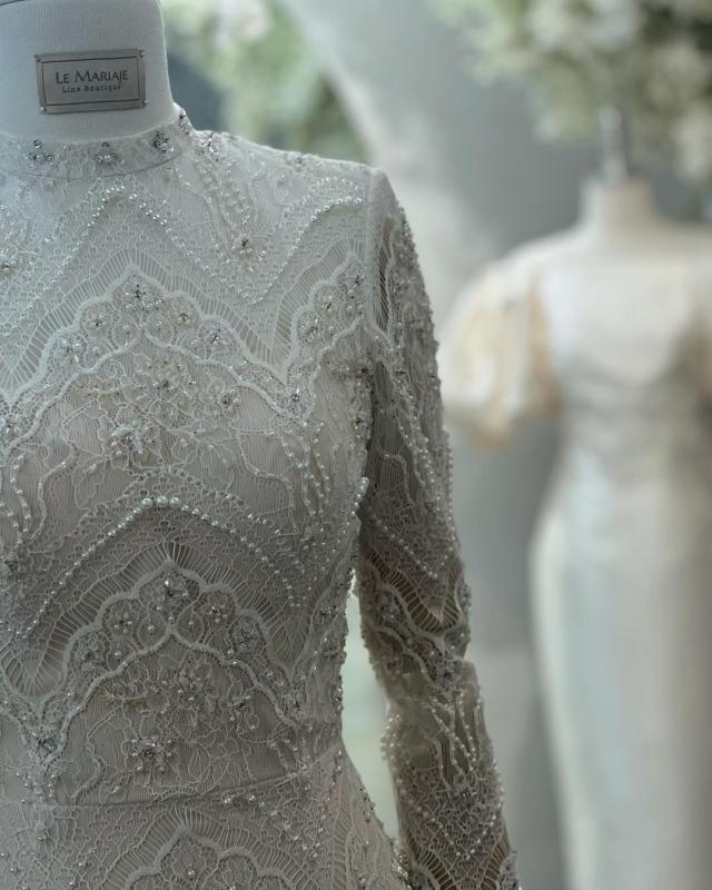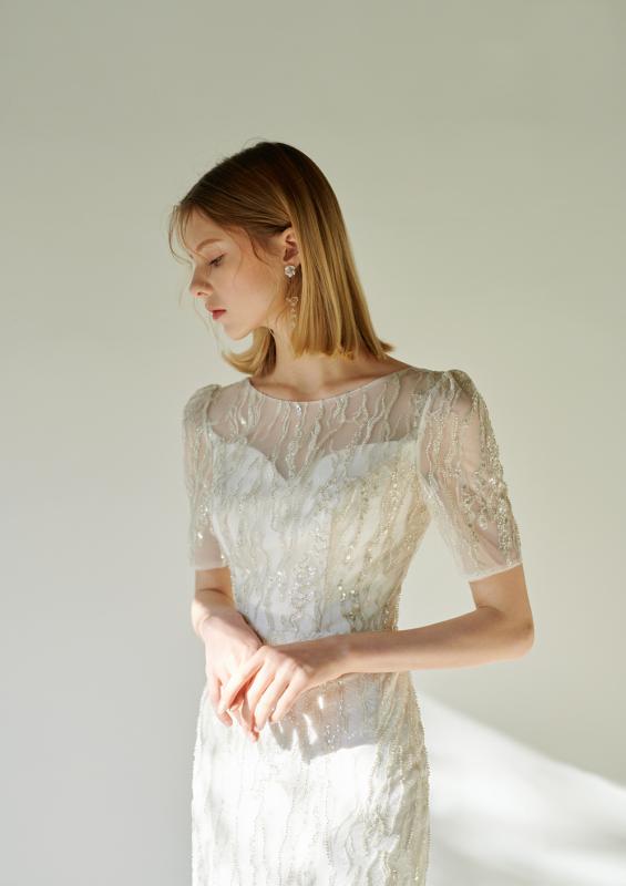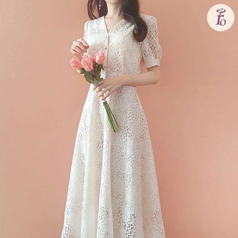 맑은 비즈의 여성스러운 패턴 레이스가 돋보이는 “케일리 드레스”