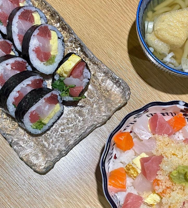 Raw tuna gimbap, assorted sushi, scattered sushi, Nagasaki champon and grilled toothfish for family dinner