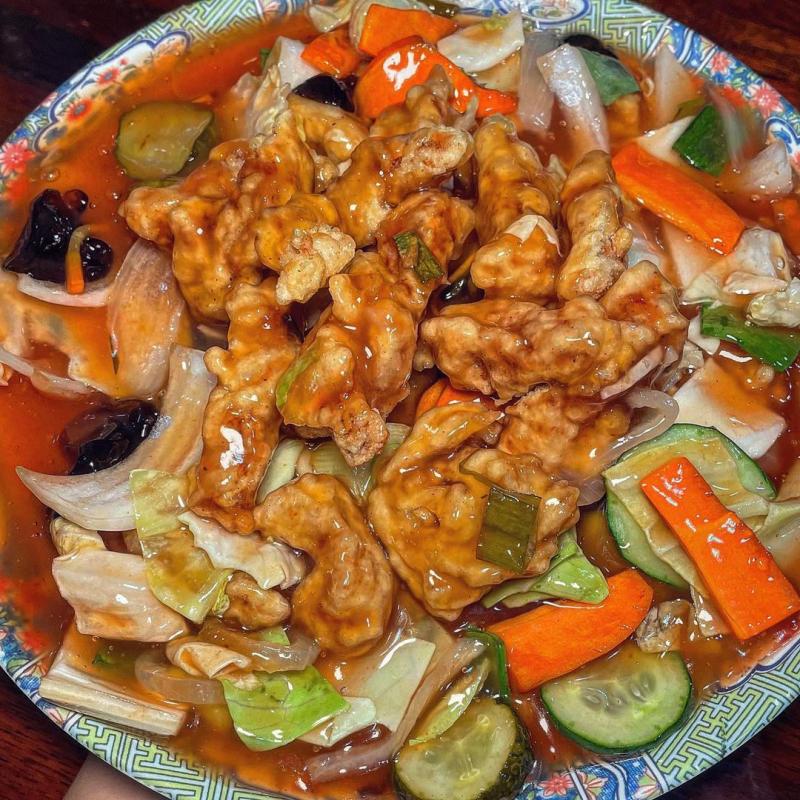 소스에 갖가지 야채를 아낌없이 넣은 탕수육이 인상적이다.