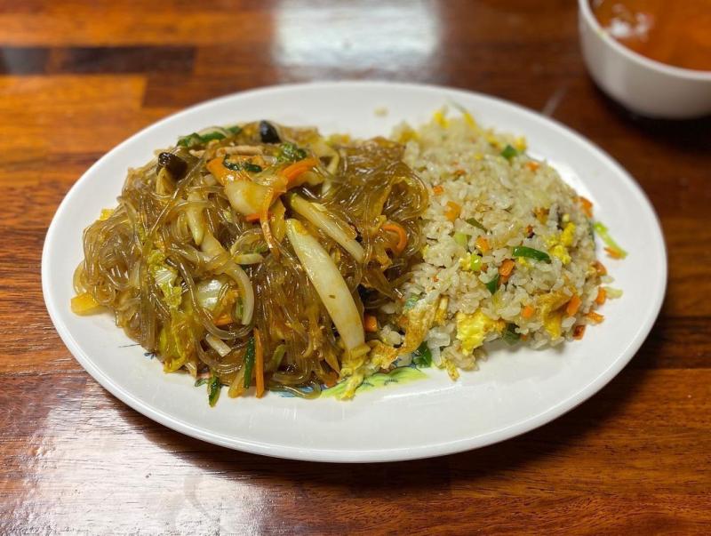 잡채밥은 꼬들꼬들한 볶음밥에 매콤한 잡채가 올려져 있는데 양이 상당히 많다. 잡채는 고소하고 간간하며 볶음밥은 밥알이 조금은 뭉쳐 있지만 불향이 잘 살아있다.