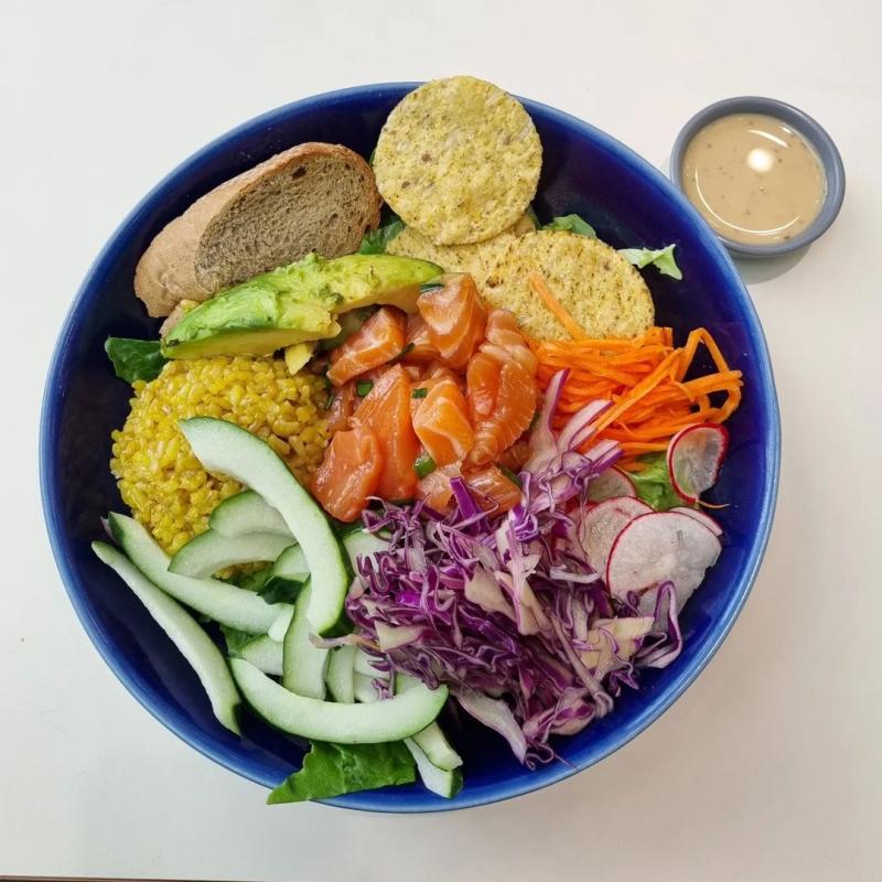 🍽 12:13 (22분) 연어포케 (밥1/2미만 남김, 빵나초소스x)