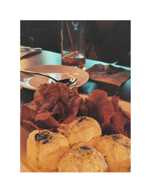 직접만든 감자칩을 글레이즈하고, 바닐라 아이스크림 위에는 하와이안 화산소금과 엑스트라버진 올리브오일을 뿌려 제공되는 디져트에요.
