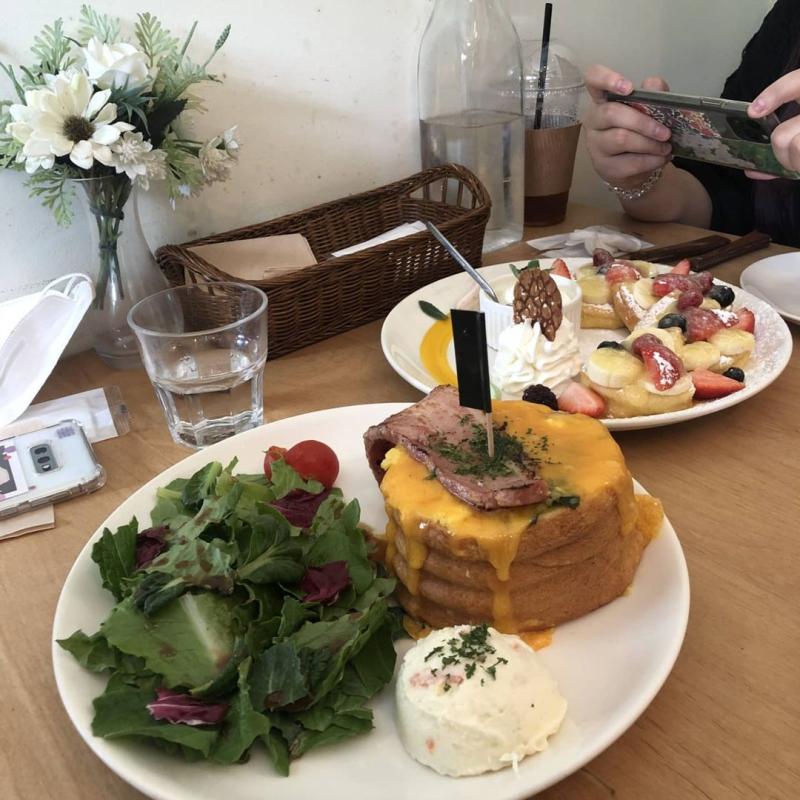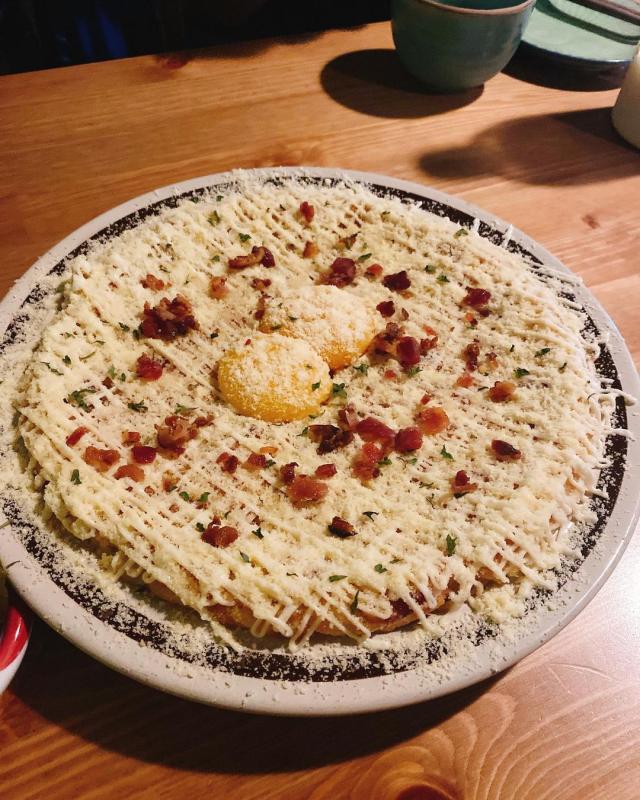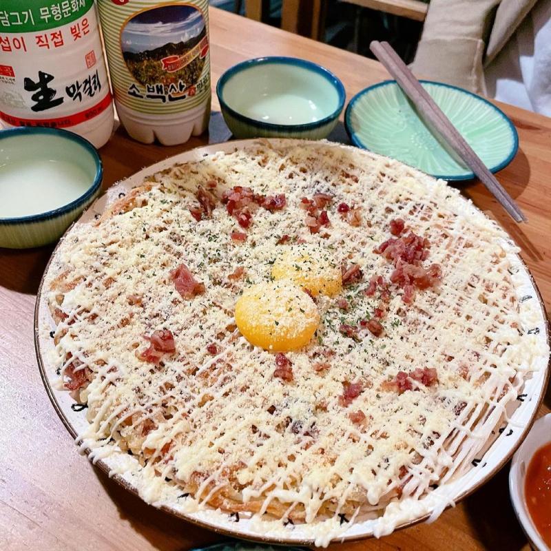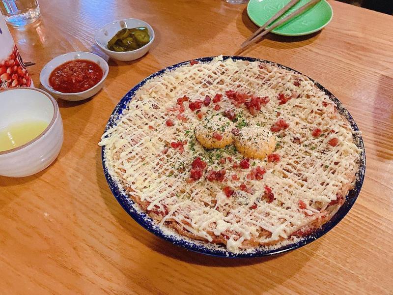 얇게 채 썬 감자를 베이컨&새우와 함께 버무려 부쳐낸 겉바속촉 감자채전은 이 자체로도 맛있는데 그 위에 마요네즈와 파마산치즈까지 듬뿍 뿌려 내어주시니 을마나 맛있겠어요?😭