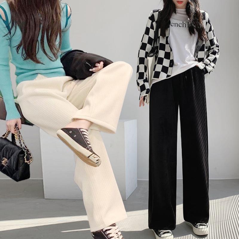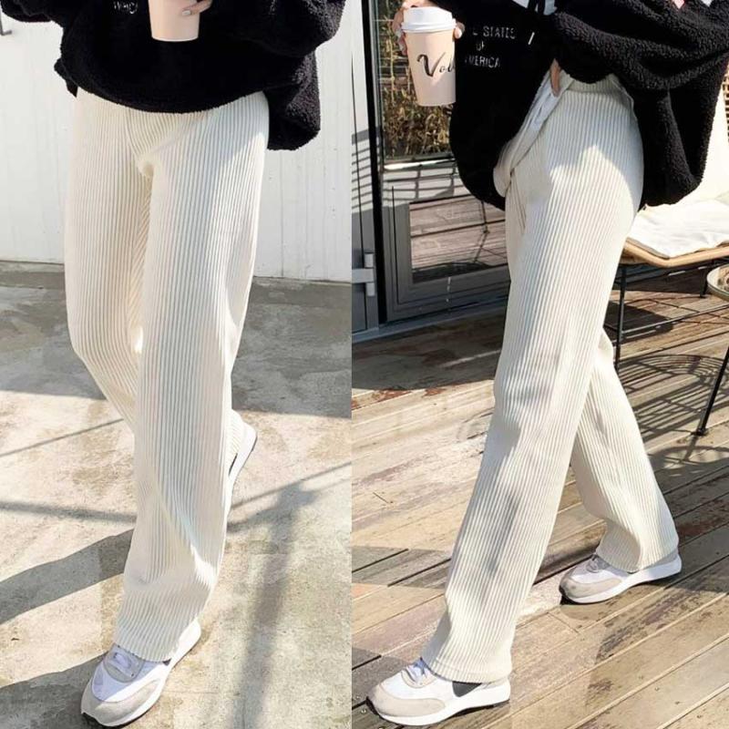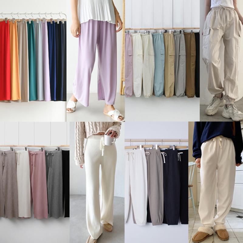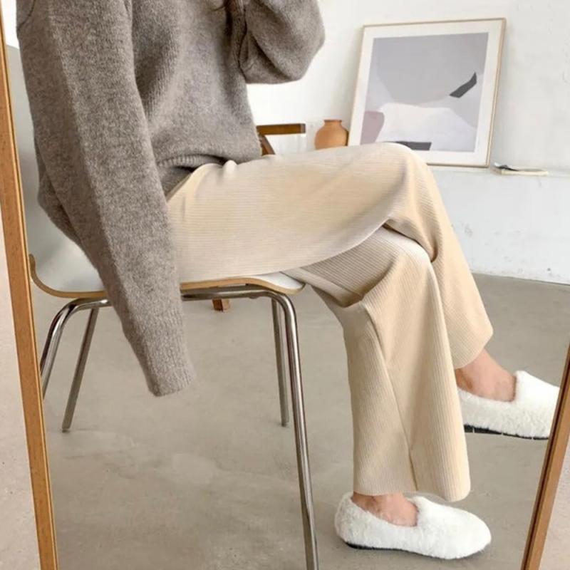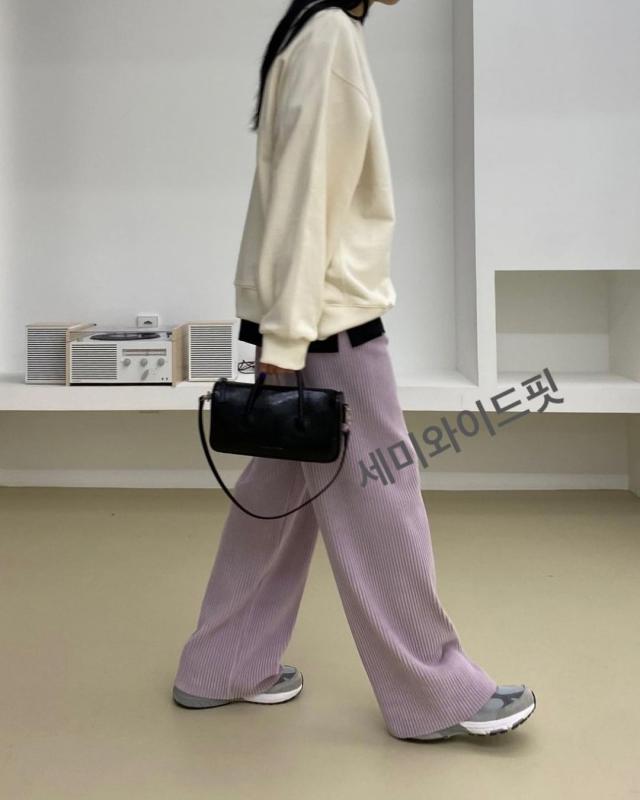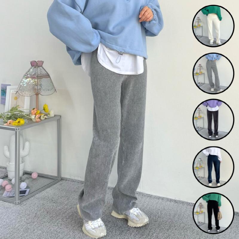 넉넉한 기장 통,밑위도길어 배까지 포근한 벨벳밴딩팬츠