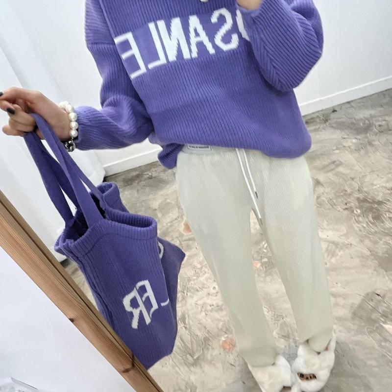 레터링 니트 가방 세트&벨벳 골지 패치 팬츠